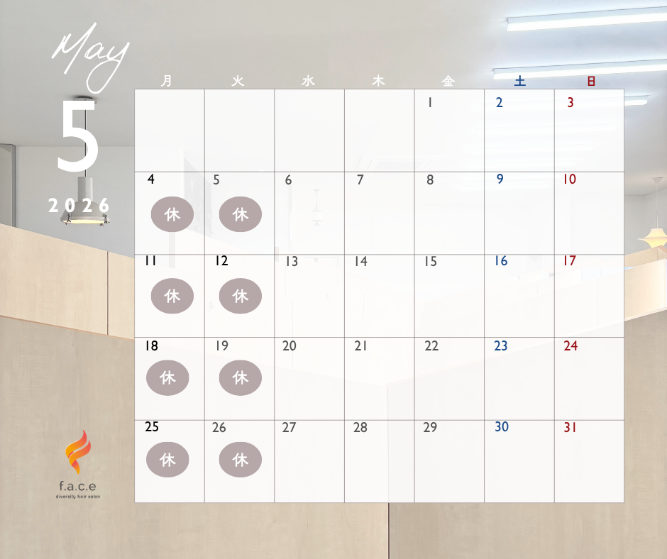5月は通常通り月火休みとなっております。GWも通常通り営業です。
